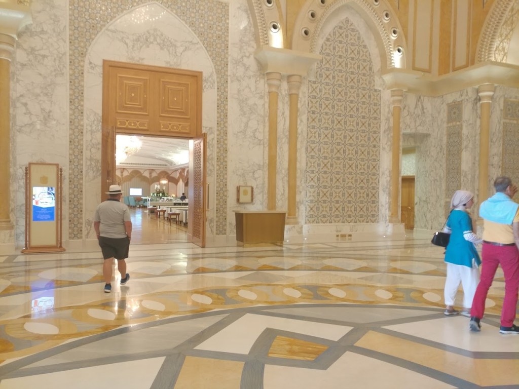 In Abu Dhabi, the Emir builds a palace covered in the ornamental beauty of gold for international summits.